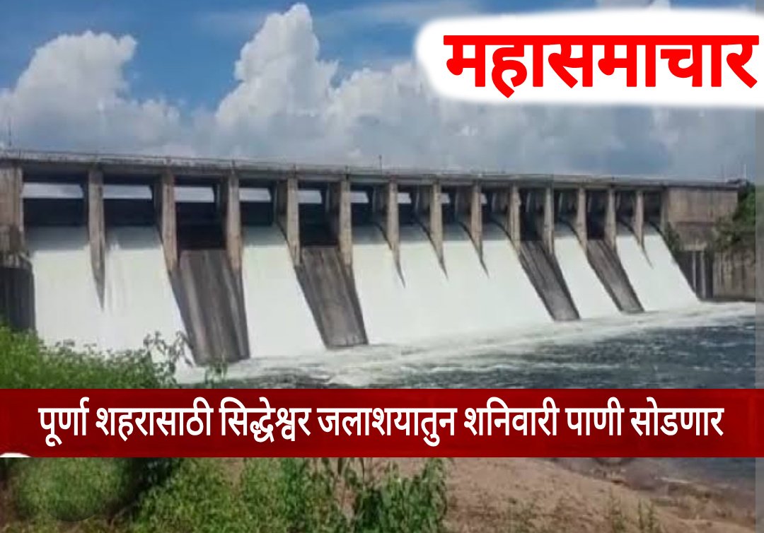 मागील काही दिवसांपासून पालीकेला पाणी पुरवठा करण्या-या कोल्हापूरी बंधा-यात थेट पूर्णा नदीच्या पात्रात सिद्धेश्वर जलाशयाच्या सहा वक्र दरवाज्यातून शनिवारी ३ में रोजी दुपारी १२ वाजता दरवाजे ३० से.मी.ने (एक फुट) उचलुन सुमारे २ हजार क्युसेस पाण्याचा विसर्ग केला जाणार आहे.पूर्णा पाटबंधारे विभागाने यासाठी हालचाली सुरू केल्या आहेत.