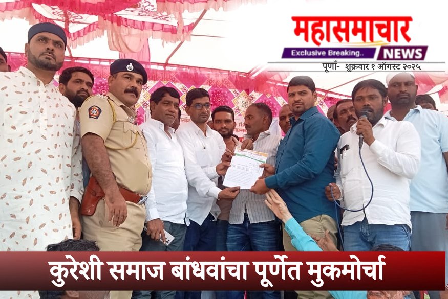 राज्य भरात कुरेशी समाजावर होत असलेल्या अन्यायांविरुद्ध समाजबांधव एकवटले आहेत.पूर्णा शहरासह जिल्ह्यातील कुरेशी समाजाने राज्यव्यापी आंदोलनात सहभागी झाले आहेत.मागील काही दिवसां पासून शांततेत सुरू असलेल्या आंदोलनवर शासनाने अद्याप कोणताही तोडगा काढला नसल्याने आता समाजाने सर्वत्र मुकमोर्चे काढले जात आहेत.पुर्णा शहरातील समाजबांधवांनी १ ऑगस्ट रोजी(Purna Qureshi community Silent March) भव्य मूक मोर्चा काढून शासनास आपल्या मागण्यांचे निवेदन पाठवले आहे.