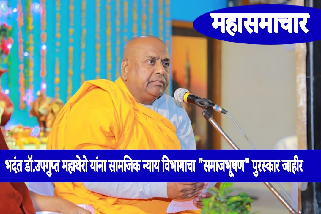 भदंत डॉ.उपगुप्त महाथेरो यांना समाजभूषण पुरस्कार जाहीर..