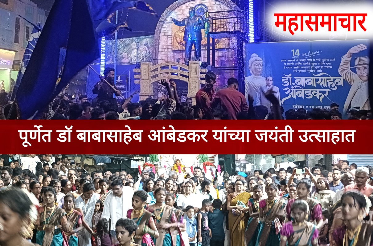 डॉ. बाबासाहेब आंबेडकर यांची जयंती ही म्हणजे तमाम समाज बांधवांसाठी एक पर्वनीच असते. १४ एप्रिल हा दिवस बाबासाहेबांची जयंती म्हणून नव्हे तर सर्वात मोठा उत्सव साजरा केला जातो. त्यामुळे एप्रिल महिना उजाडताच सर्वांना या दिवसाची आतुरतेने प्रतिक्षा असते. डॉ. बाबासाहेब आंबेडकर यांच्या जयंतीनिमित्त पूर्णा शहरात विविध कार्यक्रमांचे आयोजन करण्यात आले होते. सोमवारी दुपारी १ वाजण्याच्या सुमारास डॉ.बाबासाहेब आंबेडकर नगर येथील सभागृहापासून डॉ. बाबासाहेब आंबेडकर यांच्या प्रतिमेचे पूजन भदंत डॉ. उपगुप्त महाथेरो,भंते पय्यावंश जयंती मंडळाचे अध्यक्ष उत्तम खंदारे, भिक्खूसंघ पय्यावंश,प्रकाश दादा कांबळे, चक्रवर्ती वाघमारे,दादाराव पंडित, अँड.धम्मा जोंधळे, अँड हर्षवर्धन गायकवाड, मनोज उबाळे,केशव जोंधळे, जयंती मंडळाचे पदाधिकारी सदस्य व पंचशील नाट्य ग्रुप यांच्या प्रमुख उपस्थितीत करण्यात आले.
