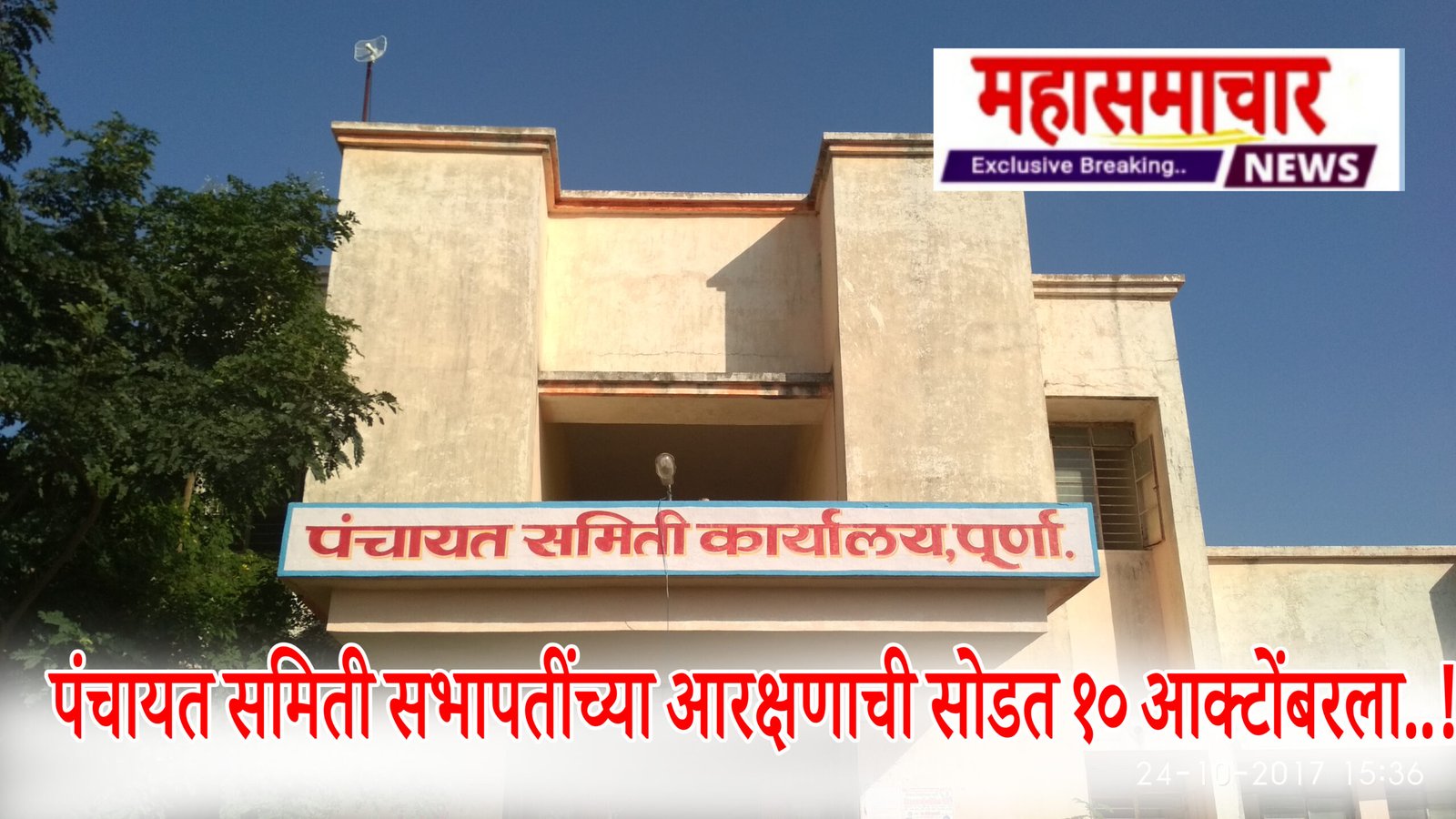 Breking News-परभणीत पंचायत समिती सभापतींच्या आरक्षणाची सोडत १० ऑक्टोबरला.!