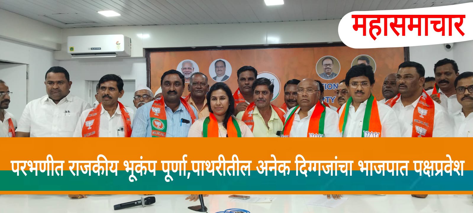 मुंबईतील भाजप प्रदेश कार्यालयात , प्रदेशाध्यक्ष चंद्रशेखर बावनकुळे,प्रभारी प्रदेशाध्यक्ष रवींद्र चव्हाण, परभणीच्या पालकमंत्री मेघनाताई बोर्डीकर, माजी आमदार रामप्रसाद बोर्डीकर यांच्या उपस्थिती १०० हुन अधिक आजी-माजी लोकप्रतिनिधी ंचा जाहीर पक्षप्रवेश