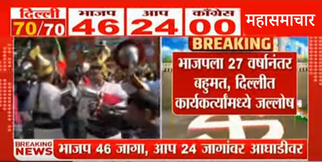 दिल्ली विधानसभा निवडणुक;भाजपची बहमताकडे आगेकूच; केजरीवाल पराभवाच्या छायेत.!