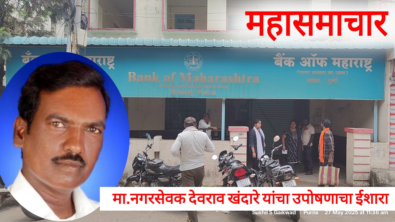 बँक ऑफ महाराष्ट्रच्या अन्यायाविरोधात देवराव खंदारेंचा आमरण उपोषणाचा इशारा