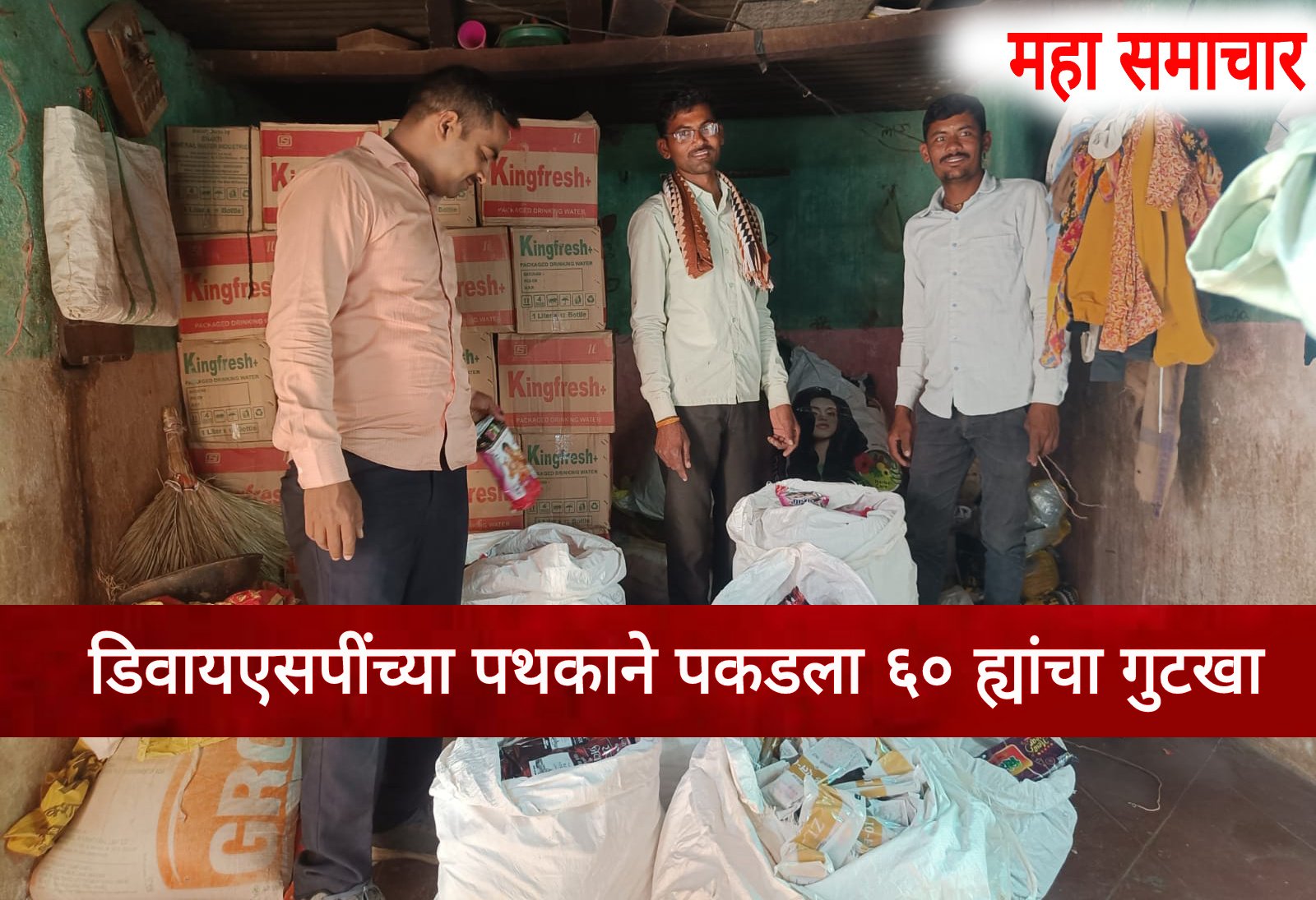 डिवायएसपींच्या पथकाची छापेमारी;६० हजारांचा गुटखा जप्त