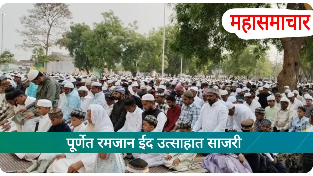 इस्लाम धर्मातील पवित्र महिना म्हणून ओळखल्या जाणाऱ्या रमजान महिन्याची सांगता जिल्ह्यात ठिकठिकाणी गुरुवार ३१ मार्च रोजी  ईद-उल-फित्र निमित्त  मुस्लीम समाजाने देशातील शांती तसेच विश्वकल्याणसाठी सामूहिक प्रार्थना करून अत्यंत हर्षोल्हासाच्या ईद साजरी केली.