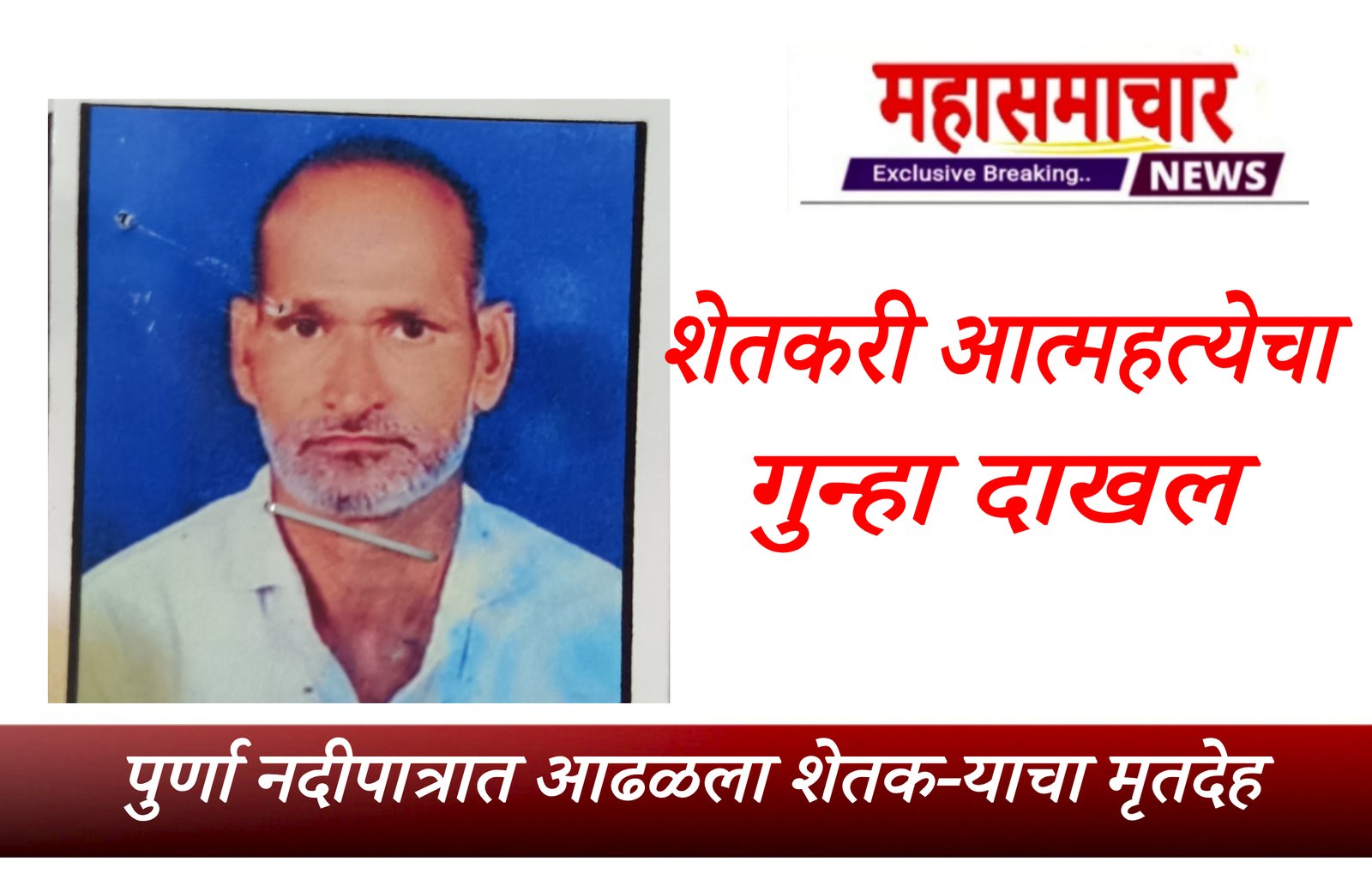 १७ दिवसांपासून बेपत्ता असलेल्या शेतकऱ्याचा मृतदेह पूर्णा नदीपात्रात आढळला..