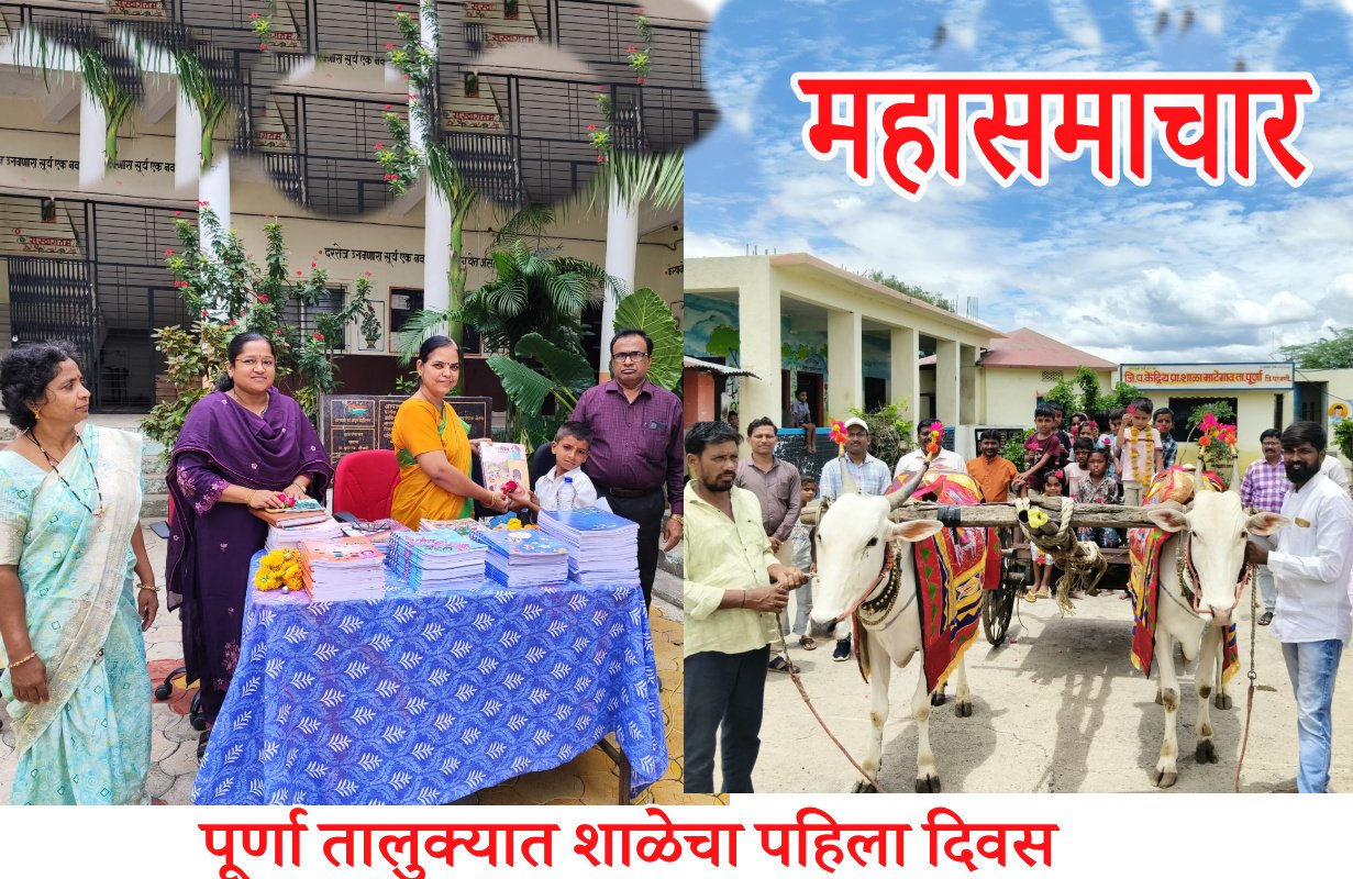 पूर्णा तालुक्यात शाळेचा पहिला दिवस ‘प्रवेश उस्तव’ म्हणून साजरा-कुठे बैलगाडी मिरवणुक तर कुठे जनजागृती रॅली