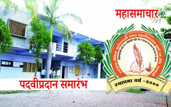 पूर्णा येथील पवार महाविद्यालयांत आयोजित करण्यात आलेल्या पदवीप्रदान समारंभाच्या अध्यक्षस्थानी महाविद्यालयाचे संस्थापक सचिव तथा प्राचार्य डॉ. रामेश्वर पवार,तर कृषिभूषण कांतराव देशमुख तसेच कवी इंद्रजीत भालेराव हे मार्गदर्शन करणार आहे. प्रमुख उपस्थितीमध्ये पूर्णा येथील तहसीलदार माधवराव बोथीकर,मा. नगराध्यक्ष उत्तमराव कदम,व.ना.मकृषी विद्यापीठातील डॉ.विलास पाटील, स्वा. रा.तीर्थ विद्यापीठाचे डॉ.सुरेखा भोसले, प्रा. डॉ.विजय भोपाळे आदीं मान्यवर यावेळी उपस्थित राहणार आहेत.या कार्यक्रमात कला पदवी, बी. लिब. आणि एम. लिब. या पदवी वर्गाचे प्रमाणपत्र वितरण होणार आहे.तरी या कार्यक्रमासाठी सर्व पदवीधारक विद्यार्थ्यांनी उपस्थित राहाण्याचे आवाहन महाविद्यालयाचे प्राचार्य डॉ.रामेश्वर पवार व परीक्षा विभाग प्रमुख डॉ.संतोष कुर्हे यांनी केले आहे.