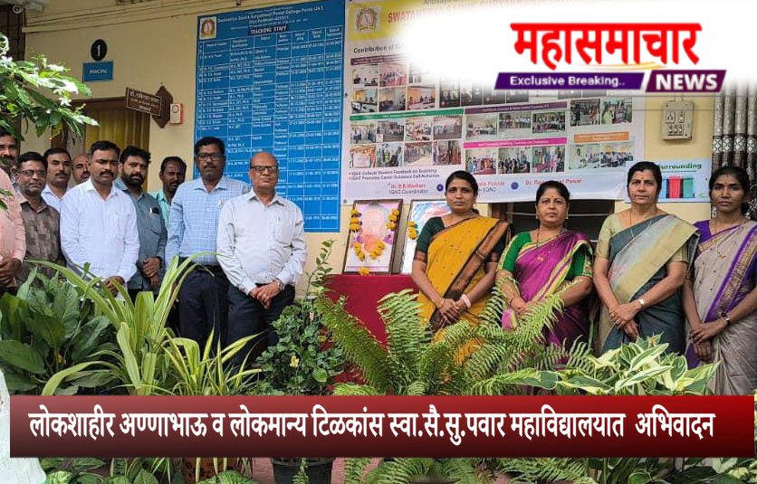 Purna स्वा.सै.सु.पवार महाविद्यालयात लोकशाहीर अण्णाभाऊ साठे व लोकमान्य टिळकांना अभिवादन