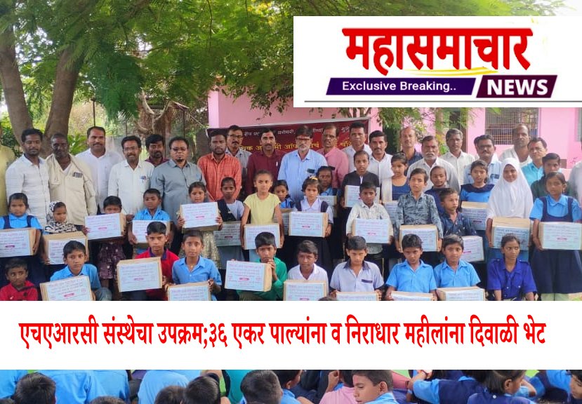 पूर्णा ता.१६ (प्रतिनिधी): दिवाळीचा आनंद प्रत्येक घरापर्यंत पोहोचावा, या उदात्त हेतूने एच.ए.आर.सी. संस्थेच्या वतीने फुलकळस येथे हृदयस्पर्शी सामाजिक उपक्रम राबविण्यात आला.१४ ऑक्टोबर रोजी केंद्रीय जिल्हा परिषद प्राथमिक शाळा, फुलकळस (ता. पूर्णा) येथे तालुक्यातील एकूण ३६ अनाथ व निराधार मुला-मुलींना दिवाळी किट, तसेच निराधार विधवा मातांना नवीन साडीचे वाटप करण्यात आले.या कार्यक्रमास संस्थेचे अध्यक्ष डॉ. पवन चांडक, फुलकळस शाळेचे मुख्याध्यापक व केंद्रप्रमुख दयानंद स्वामी, ताडकळस केंद्रप्रमुख राम जाधव, देऊळगाव केंद्रप्रमुख प्रमोद अंभोरे, तसेच अनुराज रासकटला, राजेंद्र खापरे, संतोष रत्नपारखे, प्रशांत टाक आदी मान्यवर उपस्थित होते.