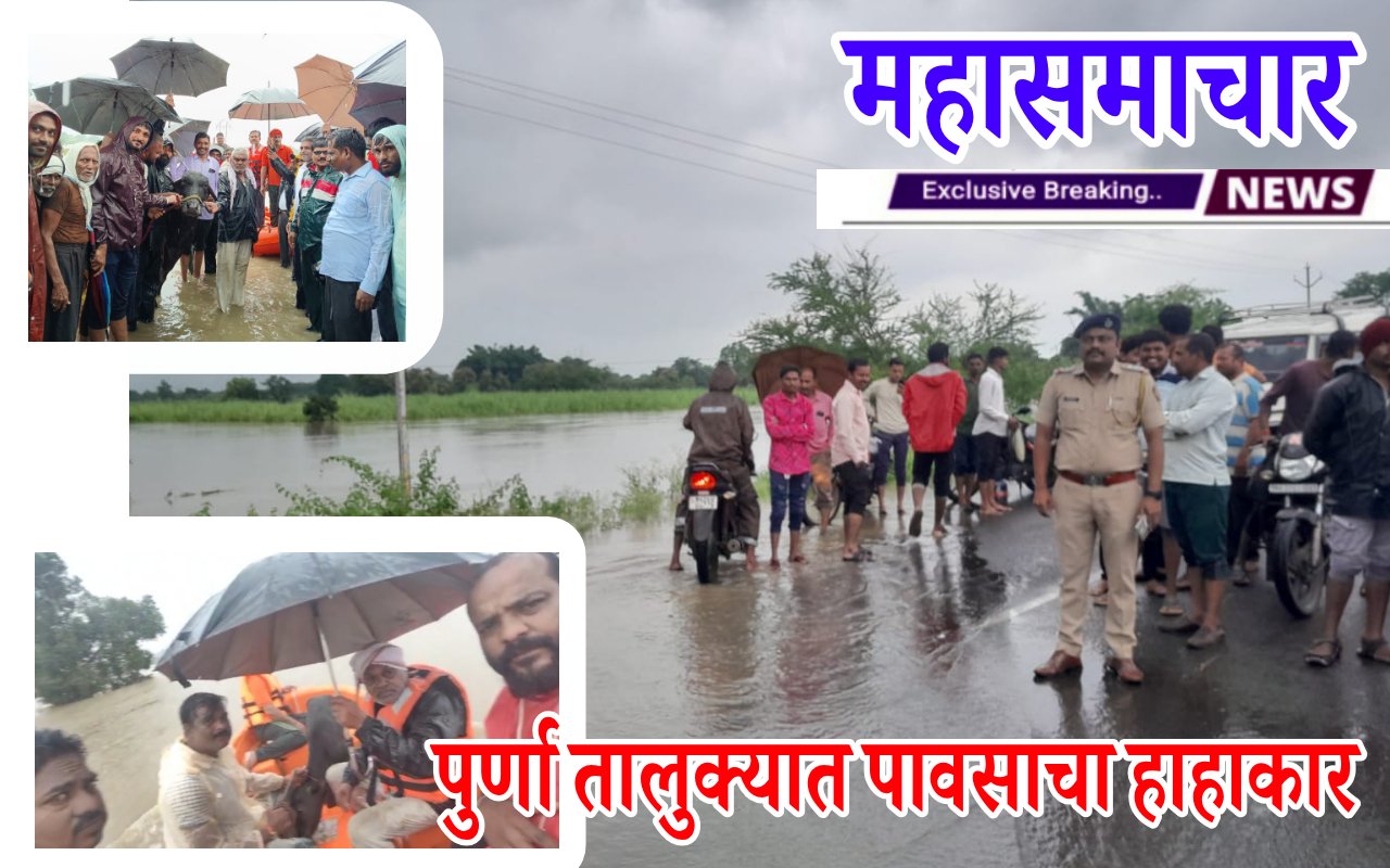 पुर्णेत अतिवृष्टीचा कहर; नांदेड, झिरोफाटा, वसमतकडे जाणारे रस्ते बंद;घरांची पडझड, जनावरे वाहुन गेली, शेतीचे प्रचंड नुकसान; जनजीवन विस्कळीत, प्रशासन रस्त्यावर