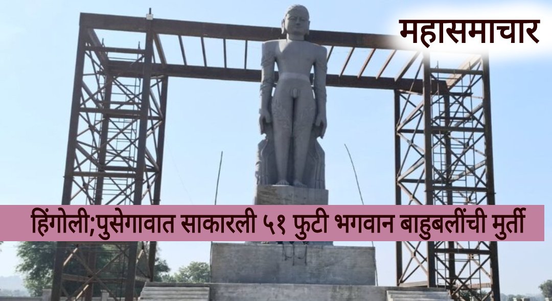 महासमाचार न्युज नेटवर्क:- हिंगोली जिल्ह्यातील सेनगाव तालुक्यांमध्ये पुसेगाव येथे देशातील दुसऱ्या क्रमांकाची श्री १००८ भगवान बाहुबलींची ५१ फुटाची मुर्ति (statue) उभारण्यात आली आहे. या मुर्तिच्या प्राण प्रतिष्ठापणेचा मुहूर्त ठरला असुन २ ते ८ फेब्रुवारी २०२६ च्या दरम्यान प्राणप्रतिष्ठापणेचा सोहळा पार पडणार असल्याची माहिती समोर आली आहे.