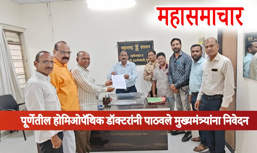 पूर्णेतील होमिओपॅथिक डॉक्टरांनी पाठवले मुख्यमंत्र्यांना निवेदन वाचा सविस्तर