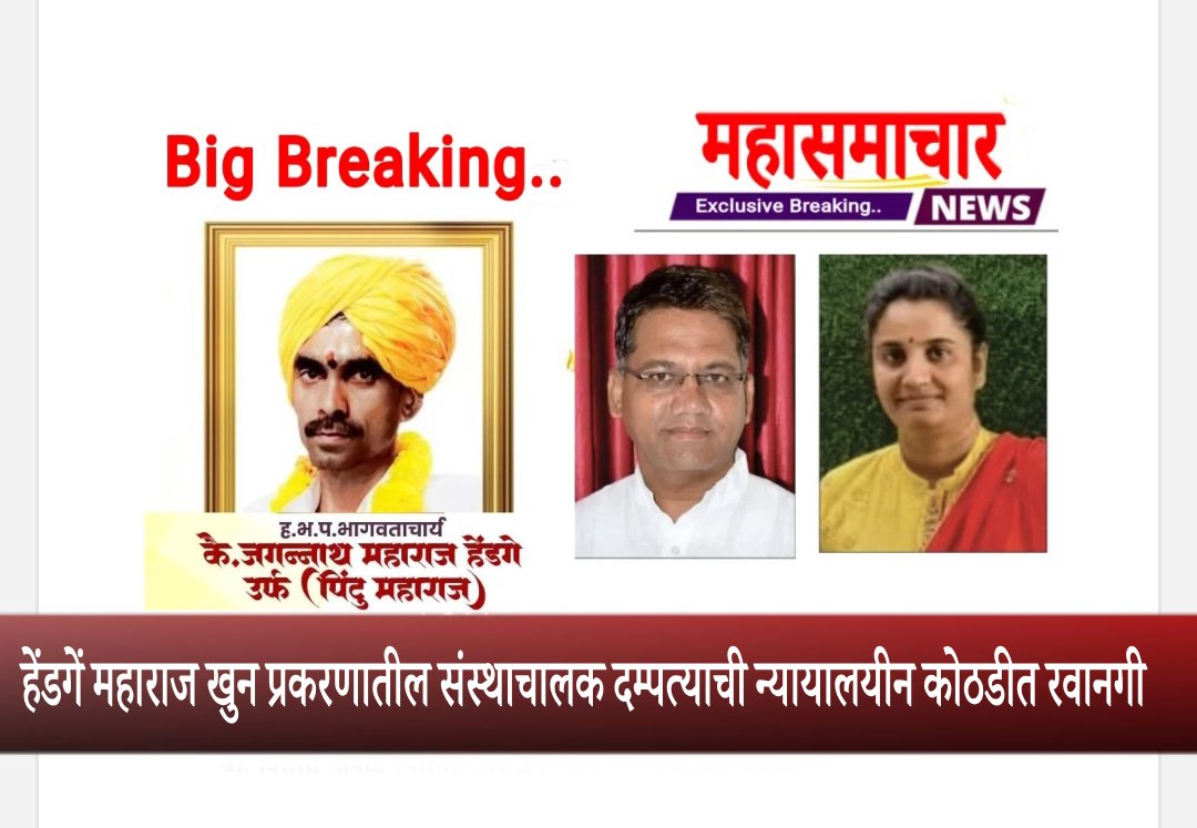 परभणी जिल्ह्यातील पूर्णेतील झिरोफाटा येथील (Hitech Residency School)हायटेक निवासी शाळेत घडलेल्या हभप.जगन्नाथ महाराज खुन प्रकरणांत पूर्णा पोलिसांच्या कोठडीत असलेले शाळेचे संस्थाचालक प्रभाकर चव्हाण व त्याची पत्नी रत्नमाला चव्हाण यांची मा.पूर्णा न्यायालयाने (ता.२७) रोजी न्यायालयीन कोठडीत रवानगी केली आहे.