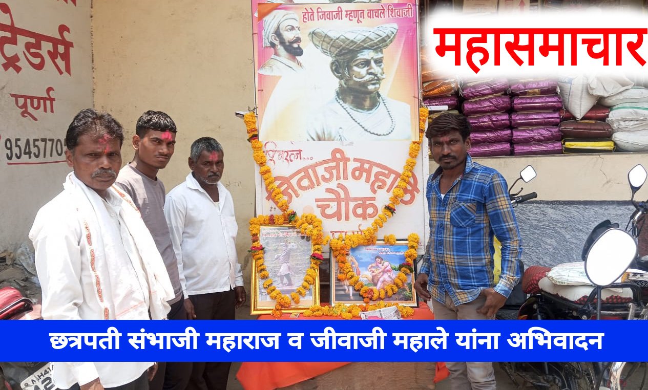 पूर्णा येथील वीर जिवाजी महाले चौकात छत्रपती शिवाजी महाराज यांचे मावळे वीर शिवा काशिद व छत्रपती संभाजी महाराज यांच्या जयंती निमित्त शनिवारी (ता. १७) रोजी जीवा सेना परभणी जिल्हाध्यक्ष राम सुर्यवंशी यांनी अभिवादन सभेचे आयोजन केले होते.यावेळी उपस्थित मान्यवरांच्या हस्ते प्रतिमेचे पूजन करून अभिवादन करण्यात आले. यावेळी माणिकराव कदम, जीवा सेना परभणी जिल्हाध्यक्ष राम सुर्यवंशी, तालुकाध्यक्ष सोमनाथ भोसले, रमण ठाकुर, सखाराम कदम आदींची उपस्थित होते.