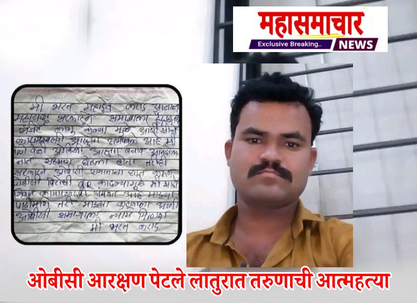 लातूर ता.११(प्रतिनिधी)OBC Reservation Newsलातूर शहर हादरवून सोडणारी धक्कादायक घटना समोर आली आहे. ओबीसी समाजातील भरत कराड या तरुणाने सरकारवर अन्यायाचा आरोप करत आयुष्य संपवले. लातूरच्या मांजरा नदीत उडी मारून त्याने आत्महत्या केली. आत्महत्येपूर्वी लिहून ठेवलेल्या चिठ्ठीत कराडने सरकारवर गंभीर आरोप केले असून, “सरकारने आमच्या समाजाचा घात केला” असा थेट उल्लेख त्यात आहे.