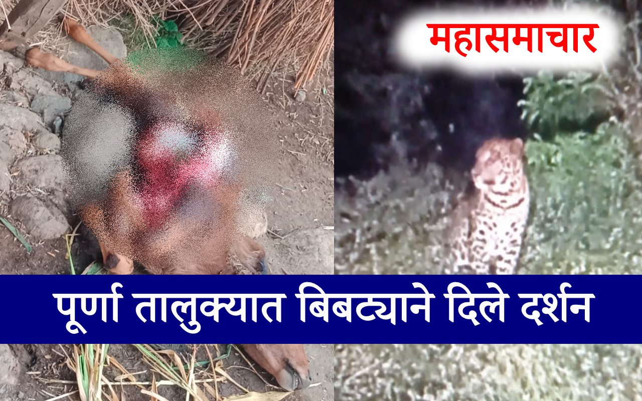Purna तालुक्यातील गणपुर-ममदापूर(Ganpur-Mamadapur) शिवारातून जाणाऱ्या रेल्वे पटरी लगतच्या एका शेत आखाड्यावर बांधलेल्या एका लहान वासराचा मंगळवारी रात्री अज्ञात हिंस्र पशूने फडशा पाडल्याचे उघडकीस आले होते.परंतु मोकाट कुत्री तसेच तडस,कोल्हा सारख्या पशुने वासराची शिकार केली असावी या कल्पनेने ही गोष्ट ग्रामस्थांनी गांभीर्याने घेतली.मात्र बुधवार ता. २८ जानेवारी रोजी रात्री १० वाजण्याच्या सुमारास (Purna kanegav)कान्हेगांव शिवारातील नदीपात्रालगत काही रेती तस्करांना बिबट्याने दर्शन दिल्याचे उघडकीस आले आहे.याघटनेमुळे परिसरात एकच खळबळ उडाली असून, एकच धावपळ सुरू झाली आहे.घटनेची माहिती मिळताच वनविभागाचे पथक (forest department team)घटनास्थळी रवाना झाले असल्याची माहिती आहे.