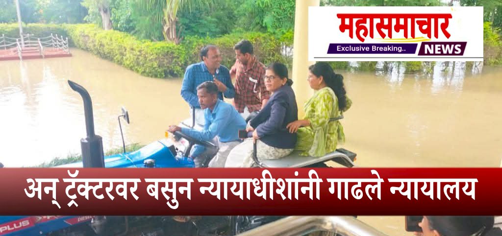 नांदेड/अर्धापूर ता.३१(प्रतिनिधी) Nanded District Ardhapur Judge News नांदेड जिल्ह्यात शुक्रवारी पहाटे अतिवृष्टी झाली. त्यामुळे पूरपरिस्थिती निर्माण झाली होती.त्यात अनेक शासकीय कार्यालयानांही पाण्याने वेढा दिला होता.त्यामुळे अनेकांना कार्यालयात पोहोचता आले नाही. या अतीवृष्टीचा फटका अर्धापूर येथील प्रथम वर्ग न्यायदंडाधिकारी श्रीमती आर.बी. सोरेकर यांना देखील बसला न्यायालय परिसरात मोठ्या प्रमाणात साचलेल्या पाण्यामुळे त्यांनी चक्क ट्रॅक्टरवर बसून न्यायालय गाठले.