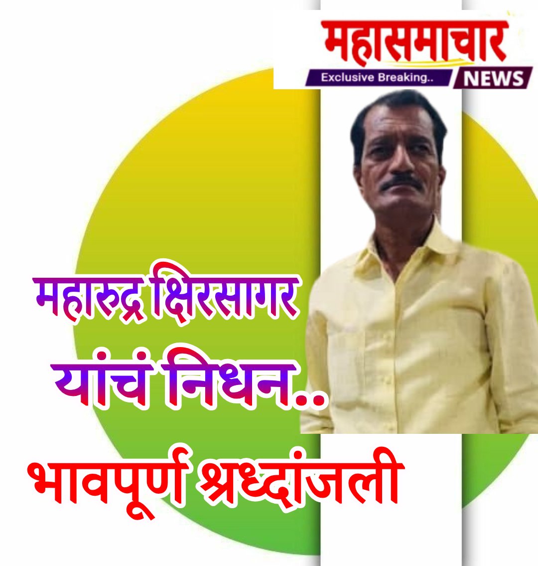 परळी वैजनाथ (प्रतिनिधी) – परळी शहरातील सुप्रसिद्ध सखाराम मुरमुरे चिवडावाले परिवारातील वारसदार व लोकप्रिय व्यावसायिक महारुद्र सखाराम क्षीरसागर (वय ५०) यांचे मंगळवार, दि. ७ ऑक्टोबर रोजी हृदयविकाराच्या झटक्याने निधन झाले.