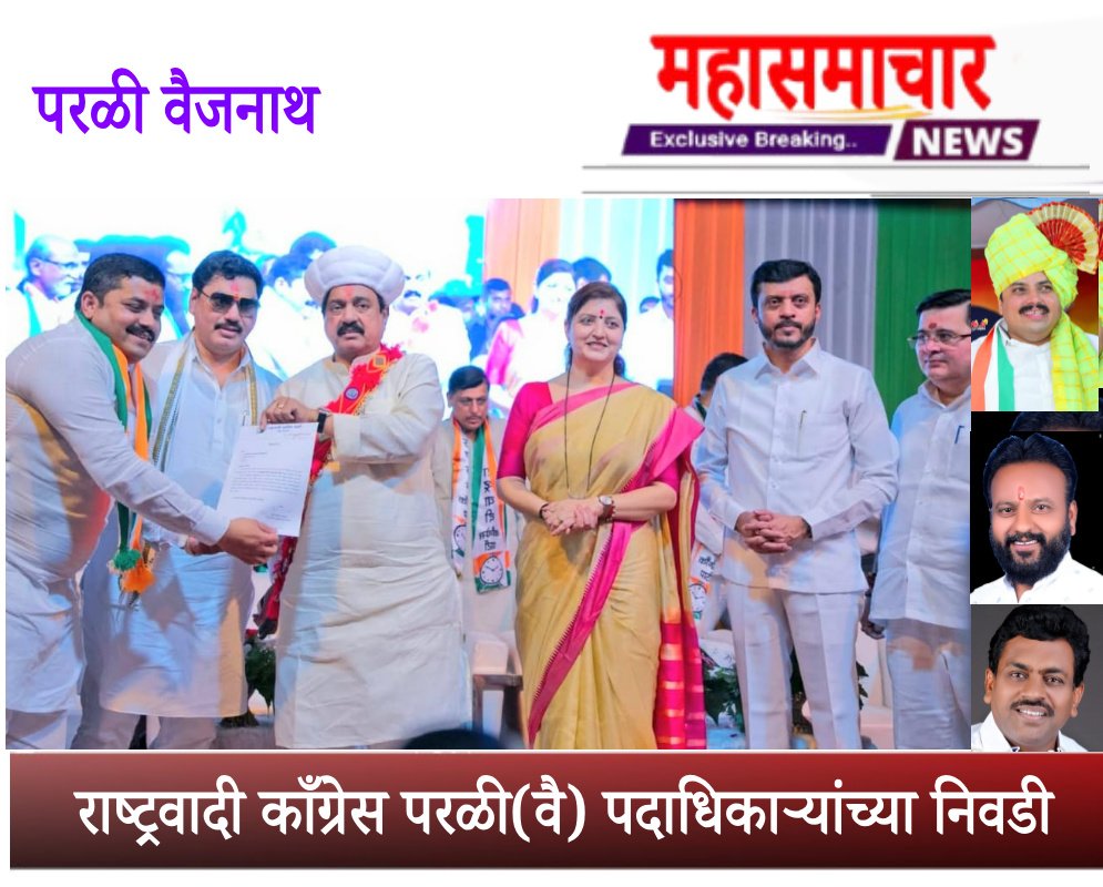 परळी तालुका अध्यक्षपदी वैजनाथराव सोळंके, शहराध्यक्षपदी बाजीराव भैय्या धर्माधिकारी यांची वर्णी;बीड येथील कार्यक्रमात प्रदेशाध्यक्ष खा.सुनील तटकरे, मा.मंत्री धनंजय मुंडे यांच्या हस्ते नियुक्तीपत्र