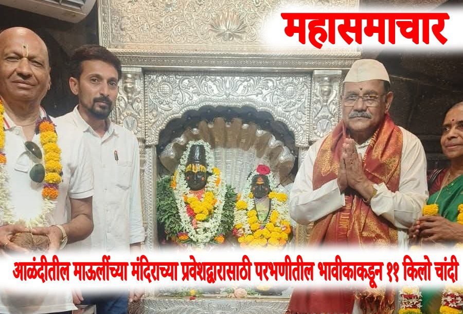 परभणीच्या भाविकाने ज्ञानेश्वर महाराज मंदिर प्रवेशद्वाराठी ११ किलो चांदी अर्पण