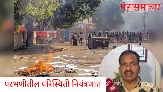परभणी शहरातील संविधान पुस्तीकेच्या शिल्पाची तोडफोड झाल्यानंतर पुकारण्यात आलेल्या बंद आंदोलनाला बुधवारी ११ रोजी हिंसक वळण लागले होते. आंदोलकांच्या मोठा जमावाने,वाहनांची तोडफोड दगडफेक,जाळपोळ, करण्यात आली होती.पोलिसांनी आंदोलकांवर सौम्य लाठीचार्ज करत जमावबंदीलागु केली होती.तर काही काळ इंटरनेट सेवाही बंद केली होती.या तणावपूर्ण घटनांनंतर परभणीतील परिस्थिती नियंत्रणात आली आहे. परभणीत पोलिस महानिरीक्षक शहाजी उमप तळ ठोकून आहेत.कोणताही अनुचीज प्रकार घडू नये यासाठी त्यांच्या नेतृत्वाखाली जिल्हा भरांमध्ये चोख पोलीसांनी चोख बंदोबस्त तैनात केला असून बुधवारी रात्री उशिरापर्यंत धुडगूस घालणाऱ्या ४० ते ५० जणांना पोलिसांनी ताब्यात घेतले आहे.शहरातील परिस्थती आता नियंत्रणात असल्याचे दिसून येते आहे.