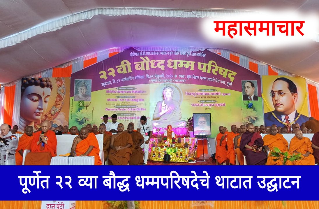 पूर्णेत २२ व्या धम्मपरिषदेचे थाटात उद्घाटन;देश विदेशातील भिख्खूंसंघ,पालकमंत्री बोर्डीकरांसह,विविध क्षेत्रातील मान्यवरांची हजेरी