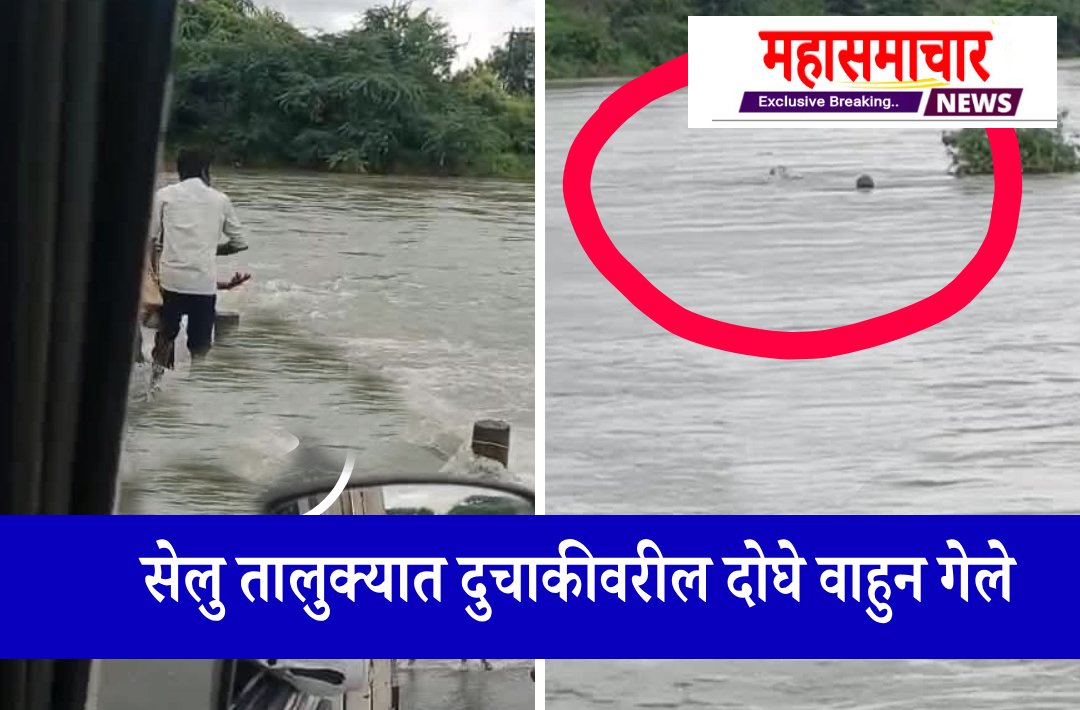 छब्बुराव शिवराम जावळे (वय ५०) रा. गुळखंड ता. सेलू व मारोती रामभाऊ हरकळ (वय ४५), रा. वालूर ता. सेलू) अशी पुरात वाहून गेलेल्या दोघांची नावे आहेत.Riding a bike over a Rajewadi bridge in flood water is expensive;The incident under selu tahsil या बाबत अधिक माहिती अशी की,दुधना नदीवरील लोअर दुधना प्रकल्पाच्या पाणलोट क्षेत्रात मोठ्या प्रमाणावर पाऊस सुरु आहे. त्याचा परिणाम लोअर दुधना प्रकल्पाच्या दोन दरवाज्यातून दुधना पात्रात पाणी सोडल्या जात आहे. त्यामुळे दुधना नदी दुथडी भरुन वाहत आहे. या पाण्याने दुधनेस पुरही आला आहे. सेलू तालुक्यातील राजेवाडी शिवारातील दुधना नदीच्या पुलावरुन पाणी वाहत आहे. मंगळवारी दुपारी या पुलावरील पाण्यातून मोटारसायकलवरील दोघांनी पलिकडील काठ गाठण्याचा प्रयत्न केला. परंतु, पाण्याच्या धोकादायक प्रवाहाने पुल ओलांडण्याचा प्रयत्न सपशेल फोल ठरला अन् हे दोघे पाण्याच्या प्रचंड प्रवाहाने दुचाकीसह नदीपात्रात वाहून गेले. प्रत्यक्ष दर्शनींनी या मोटारसायकलस्वारांना पुलावरुन मोठ्या प्रमाणावर पाणी वाहत आहे, जावू नका असा धोक्याचा इशारा दिला. परंतु, मोटारसायकलस्वारांनी तो इशारा मानला नाही.अशी माहिती प्रशासनाने दिली.