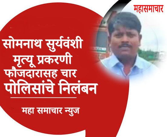 सोमनाथ सुर्यवंशी मृत्यू प्रकरणात फौजदारासह चार पोलीस निलंबित