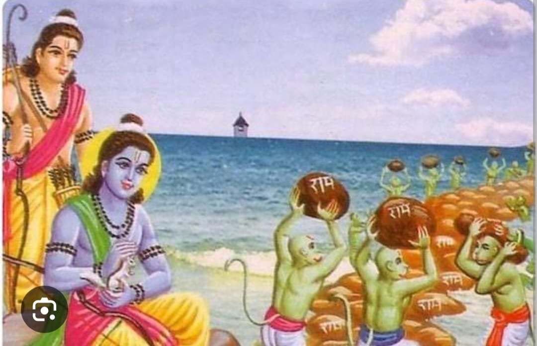 समुद्रमार्गाने जाता येत नव्हते म्हणुन वानर सेनेने समुद्र तटावरील दगड राम नाम लिहुन