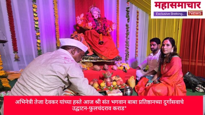 अभिनेत्री तेजा देवकर यांच्या हस्ते आज श्री संत भगवान बाबा प्रतिष्ठानच्या दुर्गोसवाचे उद्घाटन-फुलचंदराव कराड