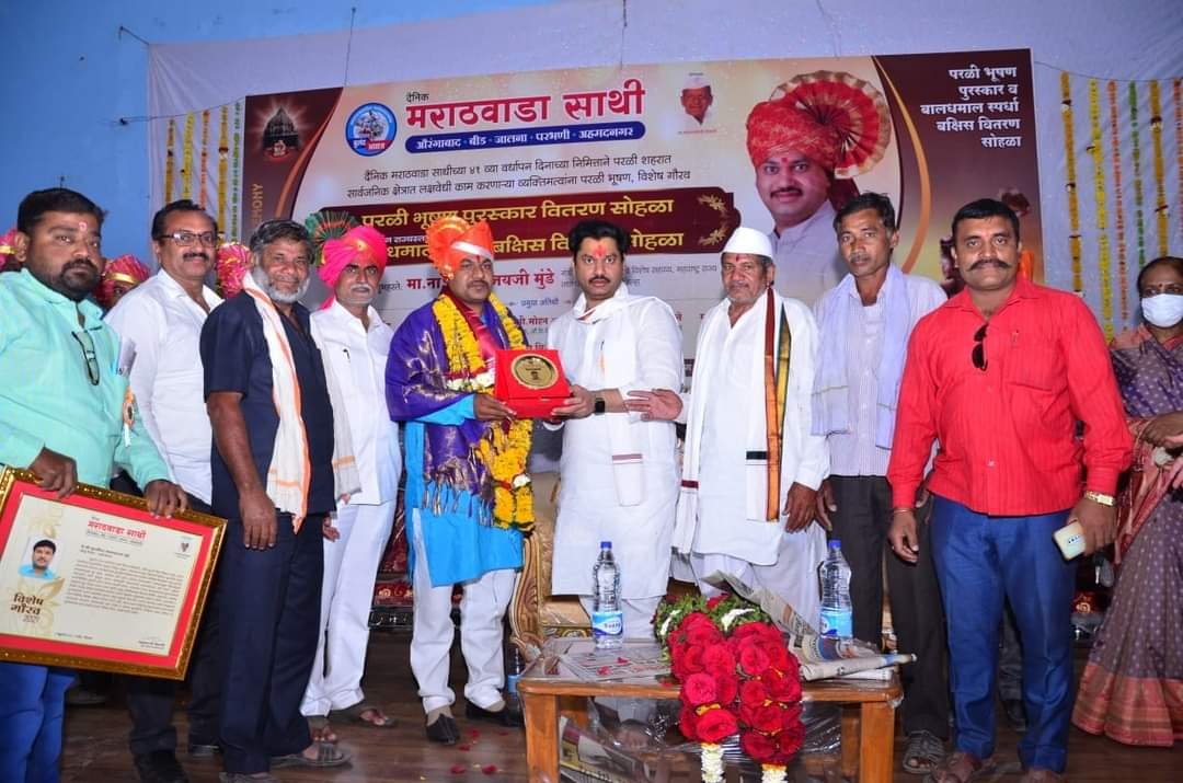 परळी वैजनाथ (प्रतिनिधी) :- येथील महाराष्ट्र कुस्तीगीर परिषदेचे परळी तालुकाध्यक्ष पै.मुरलीधर मुंडे यांना दैनिक मराठवाडा साथीच्या वर्धापनदिनानिमित्त दिला जाणारा “विशेष गौरव” पुरस्काराने पालकमंत्री ना.धनंजय मुंडे यांच्या हस्ते सन्मानित करण्यात आले. त्याबद्दल त्यांचे सर्व स्तरातून मान्यवर, मित्रपरिवार व नातेवाईकांकडून अभिनंदन होत आहे.
