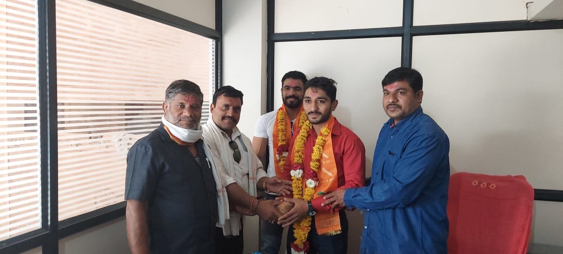 बीड जिल्हा कुस्तीगीर परिषदेचे उपाध्यक्ष मुरलीधर मुंडे यांच्या हस्ते शरीर सौष्ठव स्पर्धेत व्दितीय क्रमांक मिळवल्याबद्दल किरण गिराम व ऋषिकेश फड यांचा सत्कार