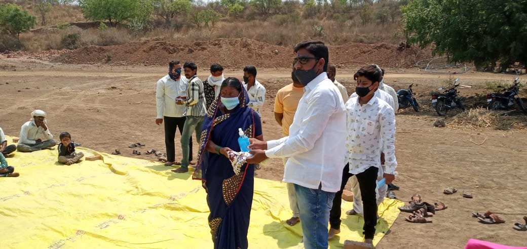 कोरोनाच्या पार्श्वभूमीवर नियमांचे पालन करत मास्क, सॅनिटायझर वाटप करून या कार्यक्रमाची सुरुवात करत विश्वरत्न डॉ.बाबासाहेब आंबेडकर यांच्या 130 व्या जयंती निमित्त गरीब कुटबियाना साडी चोळी वाटप सह अन्न भोजन वाटप करण्यात आला सदर कार्यक्रम हा मालेवाडी परळी तालुका रोड वर रमेश पवार यांच्या वीटभट्टी येथे करण्यात आला.या कार्यक्रमाचे आयोजन युवा नेते श्री संजय लक्ष्मण पवार, रमेश पवार यांनी स्वखर्चाने केला या कार्यक्रमात उपस्तीत शोषण डिस्टन्स नियम पाळत ध्वजा रोहन करून बाबा साहेबांच्या प्रतिमेस पुष्पहार घालून कार्यक्रम करण्यात आला या कार्यक्रमात 100 ते 150 गोर गरीब कुटुंबियास साडी चोळी सह अन्न भोजन वाटप करत नियमांचे पालन करत सोशल डिस्टन्स मध्ये कार्यक्रम साजरा करण्यात आला.या कार्यक्रमात गणेश देवकर, महेश देवकर,आकाश देवकर, राजेंदर पवार,शाम जाधव,अभिषेक पवार, शरद पवार,गणेश यादव, धोंडीराम पवार,गोरख पवार,सचिन यादव,जगन्नाथ पवार,तात्याराव चव्हाण,विक्रम पवार,या सर्वांनी कार्यक्रमात परिश्रम घेत कार्यक्रमाची रूपरेषा करत नियोजन बद्द काम करत कार्यक्रम संपन्न करण्यात आला.