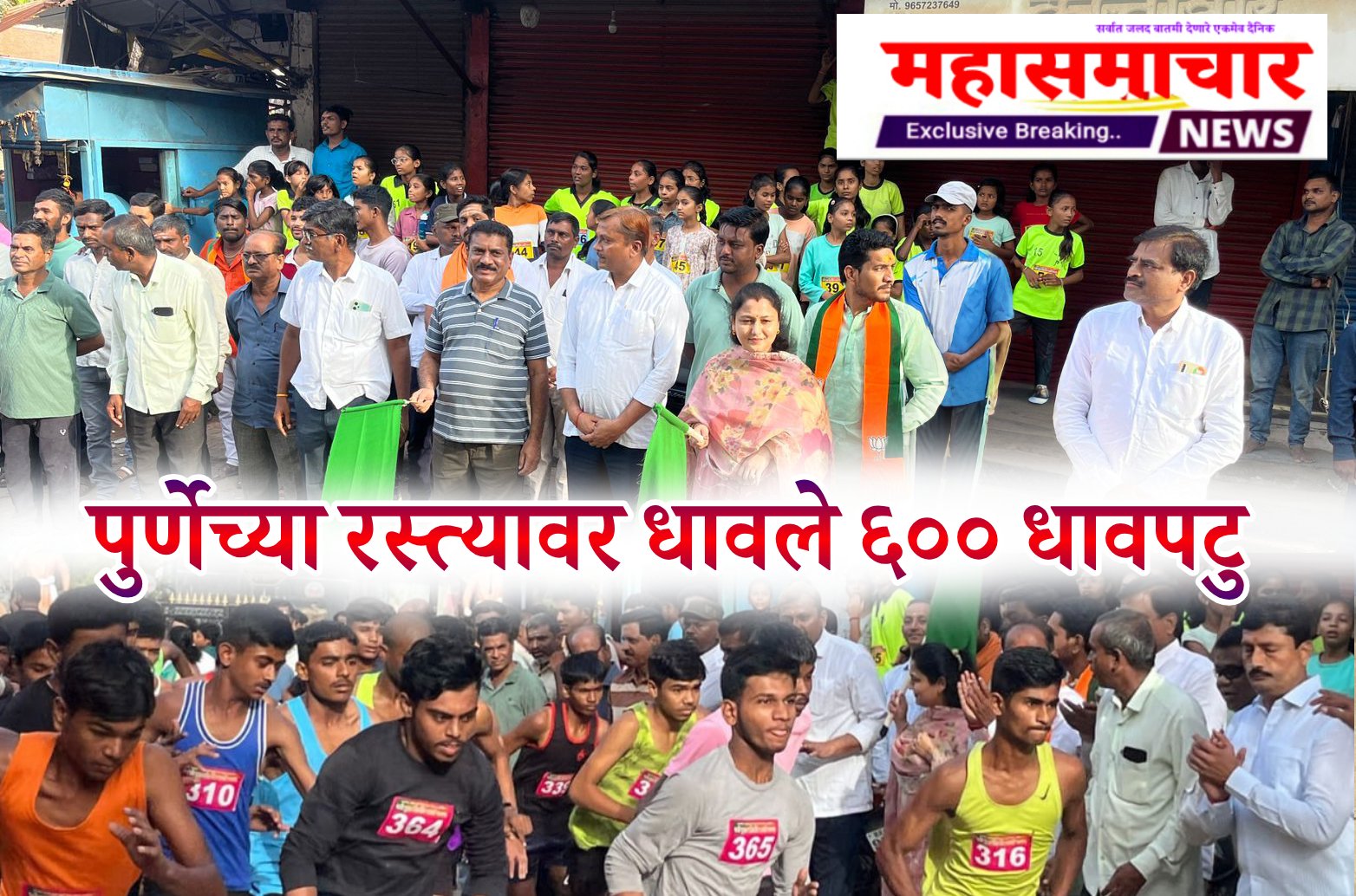 पुर्णा,ता.४ (प्रतिनिधी) देशाचे पंतप्रधान नरेंद्र मोदी यांच्या वाढदिवसानिमित्त भाजपच्या सेवा पंधरवडा उपक्रमाअंतर्गत पुर्णा शहरात आयोजित करण्यात आलेल्या भव्य ‘नमो युवा मॅरेथॉन’ स्पर्धेत तब्बल ६०० हुन अधिक धावपटूंनी सहभाग घेतला. शहरातील रस्त्यांवर उसळलेल्या या स्पर्धेला नागरिकांनी उत्स्फूर्त प्रतिसाद दिला.ही स्पर्धा शहरातील छत्रपती शिवाजी महाराजांच्या पुतळ्यापासून सुरुवात झाली. उद्घाटन सोहळ्यास भाजप नेत्या प्रेरणाताई वरपुडकर व केदार कटिंग यांनी हिरवा झेंडा दाखवून प्रारंभ केला. अँथलेटिक असोसिएशनच्या मान्यतेने पार पडलेल्या या स्पर्धेत विविध जिल्ह्यांतील खेळाडूंनी दमदार कामगिरी केली.