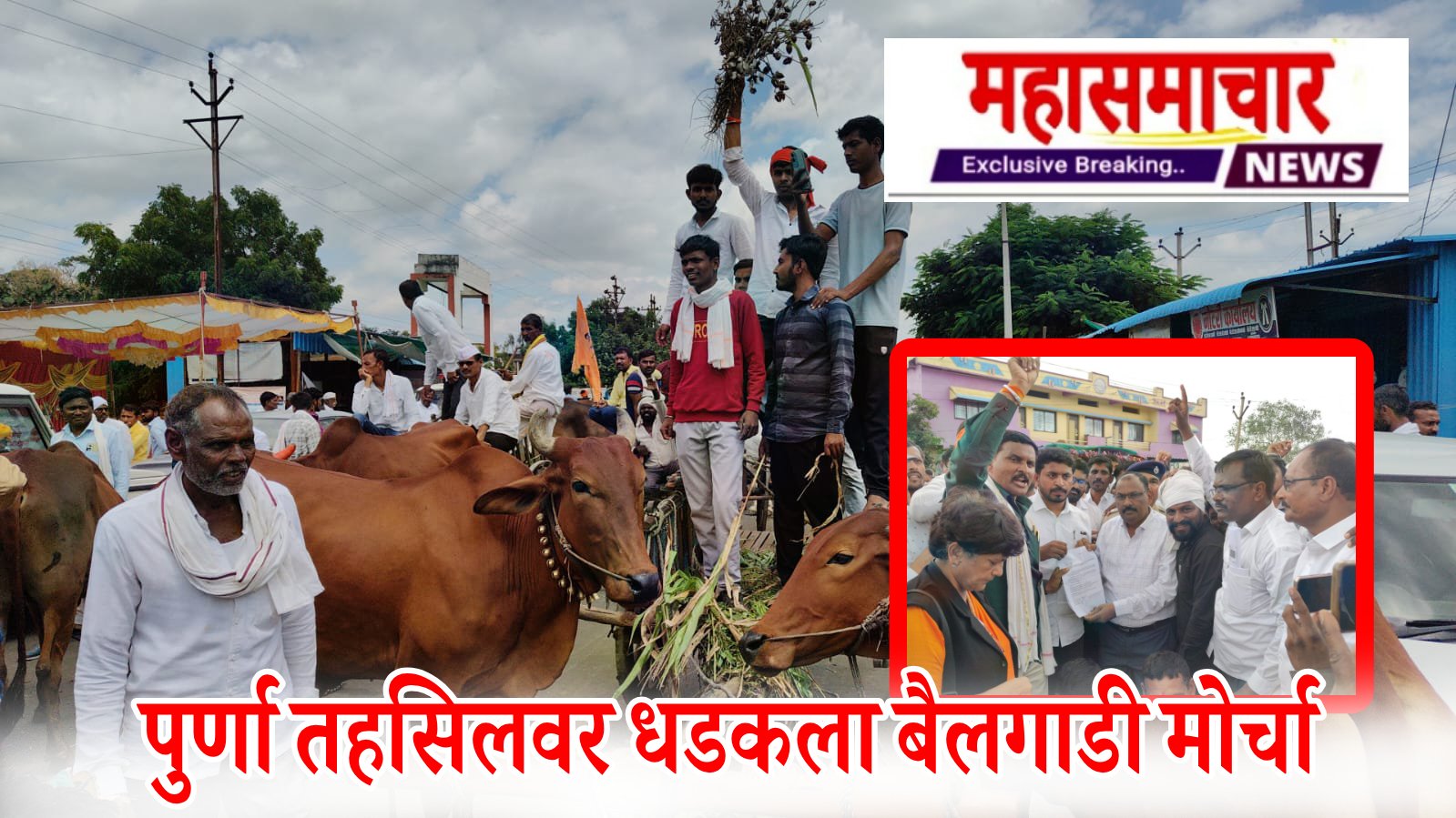 पुर्णा तहसिलवर धडकला बैलगाडी मोर्चा; अतिवृष्टी बाधीत शेतकऱ्यांना हेक्टरी ५० हजारांची मदत करा