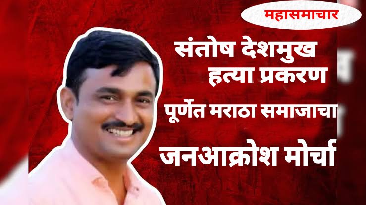 सरपंच संतोष देशमुख खुन प्रकरणाला जवळपास १५ दिवस उलटून गेले आहे.देशमुख यांचे मारेकरी अद्यापही मोकाट आहेत.या मारेकऱ्यांना व देशमुख यांच्या खुनाचा कट रचणा-या मुख्य सूत्रधारास अटक करा या प्रमुख मागणीसाठी गुरुवारी (ता.२६) रोजी स.११ वाजता पूर्णा येथील सकल मराठा समाज बांधवांच्या वतीने जन आक्रोश आंदोलन मोर्चाचे आयोजन करण्यात आले आहे.हा मोर्चा झिरो टिपॉईंट पासून ते छत्रपती शिवाजी महाराज यांच्या स्मारका पर्यंत काढण्यात येणार आहे. या आंदोलनाला समाज बांधवांनी मोठ्या संख्येने उपस्थित राहावे असे आवाहन, पूर्णा तालुक्यातील सकल मराठा समाजाच्या वतीने करण्यात आले आहे.