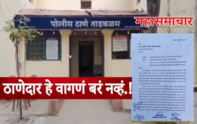 पूर्णा तालुक्यातील ताडकळस पासून ५ कि.मी. अंतरावरील कळगांव येथील शेतकरी जयप्रकाश (राजेश) सोनबा देवकते यांचा भावकीसोबत दिड एकर जमिनीचा अनेक वर्षापासून चालू आहे.जमीनीची मोजणी करून समोरच्या व्यक्तीकडे शेती निघून देखील तो शेती परत देत नसल्याने तो वाद आता न्याय प्रविष्ठ झाला आहे. या संदर्भात ताडकळस पोलीस ठाण्याचे ठाणेदार गजानन मोरे यांनी जयप्रकाश देवकते यांना फोनवरुन पोलीस ठाण्यात बोलावून घेतले. जमिनीचे सर्व कागदपत्रे घेऊन देवकते यांनी पोलीस ठाणे गाठले.आणि कागदपत्रे मोरे यांना दाखवित असतानाच त्यांचा अचानक पारा चढला. त्यांनी आरेरावीची भाषा करीत अर्वाच्च शिवीगाळ सुरू केली. हा वाद का करतोस, असे म्हणत बुटाने मारण्याची धमकीही दिली. ‘तुझ्या विरुद्ध गुन्हा दाखल करून तुला १५ दिवसांच्या पोलीस कोठडीत टाकेल’, असे सज्जड धमकावले. यामुळे जयप्रकाश यांना दरदरुन घाम आला. विशेष म्हणजे यावेळी समोरची विरोधी पार्टी ही उपस्थित होती. त्यांच्या समक्ष अशी अर्वाच्च शिवीगाळ आणि धमक्या दिल्यामुळे व्यथीत झालेले जयप्रकाश देवकते यांनी पोलीस अधीक्षकांची भेट घेऊन आपली वैâफीयत मांडत आंदोलनाचा इशारा देत एक निवेदन दिले आहे.निवेदनाची एक प्रत राज्याचे मुख्यमंत्री देवेंद्र फडणवीस यांना देखील पाठवली आहे.याप्रकरणी जिल्हा पोलीस अधीक्षकांनी उपविभागीय पोलीस अधिकार्यांना चौकशीचे आदेश बजावले आहेत