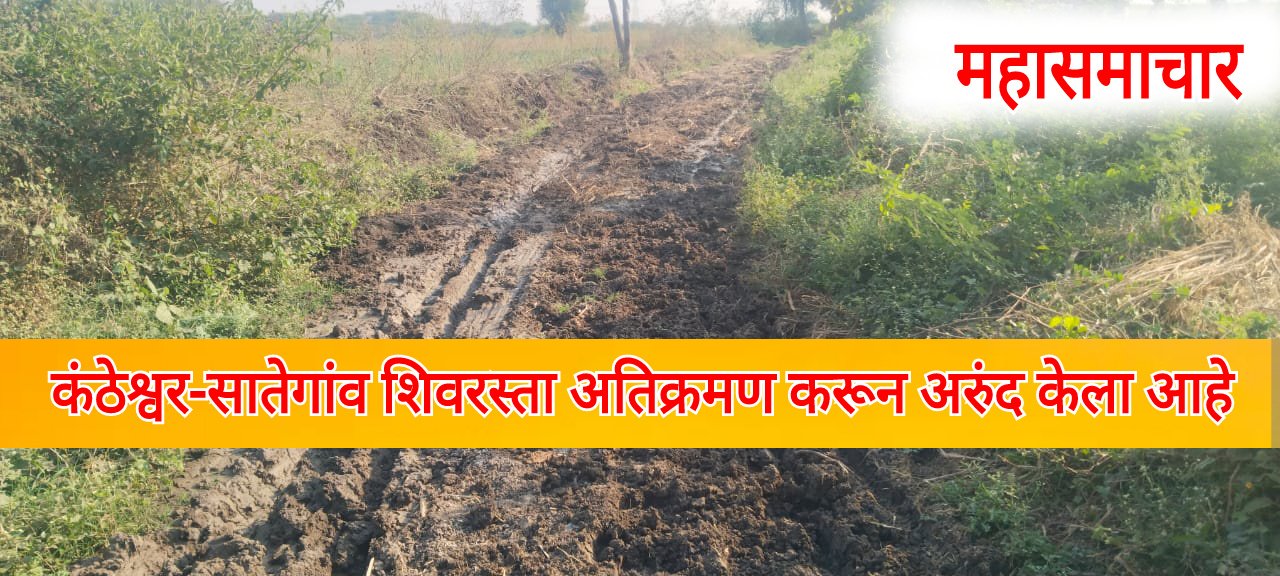 पूर्णा तालुक्यातील कंठेश्वर शिवारातुन सातेगांव कडे जाणारा शिवरस्ता हा गट नंबर १८६ व सातेगांव गट,(३), व (६१)में गटानं (१२),(११) मधुन जातो या रस्त्यावर काही शेतकऱ्यांनी जाणीवपूर्वक शिवरस्ता असल्याचे माहीत असतानाही अतिक्रमण केले आहे.त्यामुळे परिसरातील शेतकऱ्यांना रहदारी करीता मोठ्या अडचणी निर्माण होत आहेत. त्यामुळे प्रशासनाने या प्रकरणी लक्ष वेधून रस्त्यावर करण्यात आलेली अतिक्रमण तातडीने काढुन रस्ता मोकळा करून द्यावा अशा मागणीचे निवेदन कंठेश्वर येथिल शेतकऱ्यांनी तहसीलदार पूर्णा यांना दिले आहे.निवेदनावर मारुती सिताराम कदम,संजय गंगाधर कदम, उद्धव बालासाहेब कदम, अर्जुन संतोबा कदम, सिताराम किसनराव कदम आदींच्या स्वाक्षऱ्या आहेत.