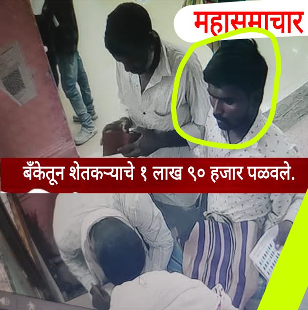 याबाबत अधिक माहिती अशी की, पूर्णा तालुक्यातील चांगेफळ येथील रहिवासी असलेले देवराव मारोतराव बुलंगे यांचे पूर्णा येथील स्टेट बँक ऑफ इंडिया शाखेत खाते आहे.ता.९ एप्रिल बुधवारी ते एका नातेवाईकांना पैसे द्यायचे असल्याने ते बँक खात्यावरील रक्कम काढण्यासाठी दुपारी बँकेत आले होते. दरम्यान तत्पूर्वी त्यांनी आपल्या शेतातून निघालेली तूर बाजार समितीच्या आवारातील बोकारे ट्रेडिंग कंपनी यांना विक्री केली होती .विक्रीतून आलेले १ लाख ५० हजार रुपये तसेच अन्य एकाकडून हात उसने घेतलेले चाळीस हजार रुपये असे एकूण १ लाख ९० हजार रुपये घेऊन ते येथील स्टेट बँकेच्या शाखेत गेले. दरम्यान खात्यावरील रक्कम काढण्यासाठी चेक लिहीत असताना. त्यांच्याजवळ पिशवीत असलेले १ लाख ९० हजार रुपये एका पिशवी ठेवलेले होते. त्यांच्या पाठीमागे उभे असलेल्या एका अज्ञात चोरट्याचा त्यावर बहुदा डोळा असावा त्या पिवषीवर त्याच्या जवळील पिवशी झाकून अलगदपणे त्यांचे पैसे लांबवले. हा सर्व प्रकार बँकेच्या सीसीटीव्ही कॅमेरा मध्ये कैद झाला असून, चोरटा पिशवी खाली पिशवी लपवून पैसे अस घेऊन जात असताना स्पष्ट दिसत आहे. घटनेची माहिती शाखा अधिकारी यांनी तातडीने स्थानिक पोलिसांना दिली.पोलीस निरीक्षक विलास गोबाडे,अण्णा माने, मंगेश झुकटे, टाकरस शेमेवाड यांनी शाखेत येऊन सीसीटीव्हीची पाहणी केली व चोराच्या शोधासाठी पथकं रवाना केली असल्याचे सांगितले. शहरातील गजबजलेल्या नॅशनलाईज स्टेट बँकेमध्ये हा प्रकार घडल्याने ग्राहकांमध्ये एकच खळबळ उडाली असून भीतीचे वातावरण आहे चोरट्यांना तातडीने जेरबंद करावे अशी मागणी ग्राहकांमधून होत आहे.