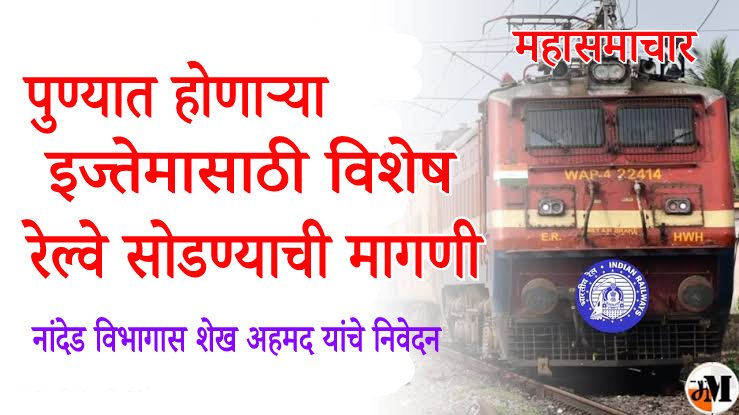पुणे इज्तेमा;नांदेड रेल्वे विभागातून विशेष रेल्वे सोडा