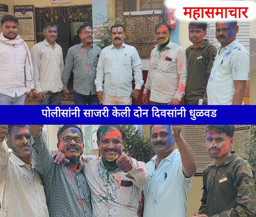 देशभरात नुकताच होळी धुळवडीचा उत्सव साजरा करण्यात आला. तर अनेकांनी या दिवशी रंग खेळत पार्टी केली असेल. पण ऑन ड्युटीवर असलेल्या पोलिसांना ् मात्र कर्तव्यामुळे होळी साजरी करता आली नाही.खाकीतला माणुस नागरिकांची धुळवड शांततेत साजरी व्हावी यासाठी दिवसभर ड्युटीवर होता.कर्तव्यात कसुर नको म्हणून पूर्णा पोलिस ठाण्यातील पोलीसांनीही शुक्रवारी होळी साजरी नकरता रविवारी १६ रोजी दैनंदिन कर्तव्य पार पाडत लंच टाईम वेळात वेळ काढून काही क्षण रंगबिरंगी करत धुळवड साजरी केली.