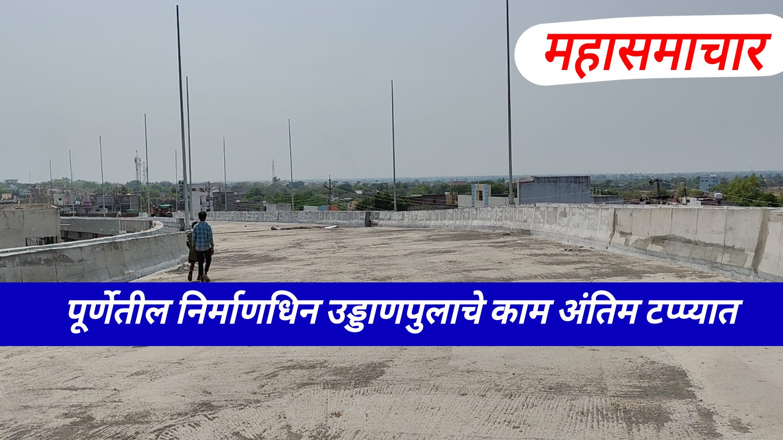 पूर्णा शहरातून जाणाऱ्या महामार्ग क्र २४९ रस्त्यावर रेल्वे गेट क्र१७६अ.किमी ९४८/६.५ व १३४अ.किमी ३२०/६.७ दरम्यान महारेल कार्पोरेशन कडून सुरू आहे.या कामास २०१९ मध्ये प्रारंभ झाला होता.दरम्यान दोन वर्षे कोरोना काळामध्ये काम रखडले होते.उड्डाणपुलासाठी तब्बल २७ पिल्लर उभारण्यात आले आहेत. उड्डाणपुलासाठी १२८ कोटी रुपये खर्च होत आहे .या कामात त्वत्कालीन कंत्राटदाराने हलगर्जीपणा करत कमकुवत,निकृष्ट ९ पिल्लर उभारले होते ते तोडण्यात आले.कंत्राटकंपनी बदलुन दुसरी कंपनीकडे काम देण्यात आले.अश्या तांत्रिक अडचणींमुळे संबंधित कामाचा कालावधी वाढला आहे.सदरील उड्डाणपुलाच तयार होत असलेल्या प्रमुख एकमेव रस्ता असल्याने चार वर्षांपासून पर्यायी भुयारी मार्गाखालून वाहतूक सुरू आहे.पर्यायी रस्ता खराब असल्याने तसेच पावसाळ्यात पाणी साचत असल्याने शहरातील नागरिकांना मोठ्या अडचणींना तोंड द्यावे लागले होते.आता निर्माणधिन उड्डाणपुलाचे काम प्रगतीपथावर असून, पुलाच्या दोन्ही बाजूला असलेल्या भराव भरणे,तसेच हि़गोली गेट ते नांदेड रेल्वे गेट दरम्यान काॅक्रेट स्लॅब चे तसेच लहान सहान कामे वगळता ९० टक्के काम पूर्ण झाले असून,येत्या दोन ते तीन महिन्यांत अगदीच पावसाळ्यापूर्वी हे काम पूर्ण होण्याची अपेक्षा आहे.