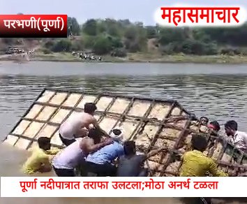 या बाबत अधिक माहिती असी की, पूर्णा तालूक्यातील निळा येथे ता.२० मे रोजी संभाजी सुर्यवंशी, प्रभाकर सुर्यवंशी यांच्या कन्येचा विवाह सोहळा होता.या विवाह सोहळ्याला जाण्यासाठी मधला मार्ग म्हणून कानडखेड शिवार पूर्णा नदीपात्र ओलांडून जवळ पडणारा आहे.या मार्गे सदर लग्न समारंभाला जाण्यासाठी मंगळवारी दुपारी ११:३० ते १२ वाजे दरम्यान सातेफळ,कात्नेश्वर, आहेरवाडी, नांदेड येथून पाहुणे नागरीक पूर्णा नदीपात्रातून निळा गावाकडे जाण्यासासाठी चालू असलेल्या नाव तराफ्याकडे गेले.सदर नाव तराफ्यात दोन दुचाकी टाकून त्यावरील माणसं बसली नाव चालू होताच काही अंतर नदीपात्रात गेल्यावर एकसाईड वजन अधिक होत नाव उलटली.यात, पुरुष, महिला,लेकरं माणसी व दुचाकी तराफा खाली गेली.त्यामुळे पाण्यात बुडालेल्या माणसांनी गोच्या गंडागळ्या खाल्या.ह्या घटनेमुळे एकच आरडाओरडा झाल्यामुळे तिथे नदीकिनारी असणा-या नागरीक व नावाड्यांनी पाण्यात गेलेली माणसं हाताला धरून काठावर काढली.मोठ्या प्रयत्नाने दुचाकी पाण्यातून बाहेर काढल्या.ही नाव नदीपात्रातील मध्यभाग पाण्यात उलटली असली तर काही तरी विपरीत होण्याची शक्यता होती.परंतु, नदीपात्र मध्यात जाण्या अधिच उलटल्या गेली.यात सुदैवाने कोणतीही जीवितहानी झाली नसल्यामुळे पाहुणे मंडळींनी सुटकेचा निःश्वास सोडला.या घटनेत काही पुरुष महिला व छोट्या लेकरांचा समावेश असल्याची माहिती विश्वसनीय सूत्रांनी दिली.दरम्यान, घटनेची माहिती पूर्णा पोलिसांना कळाल्याचे समजते.