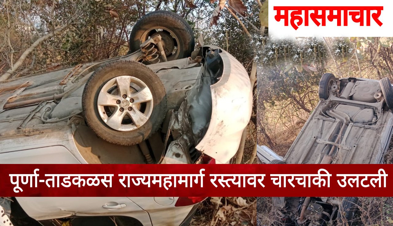 पूर्णा-ताडकळस राज्यमहामार्ग रस्त्यावर चारचाकी कार उलटली