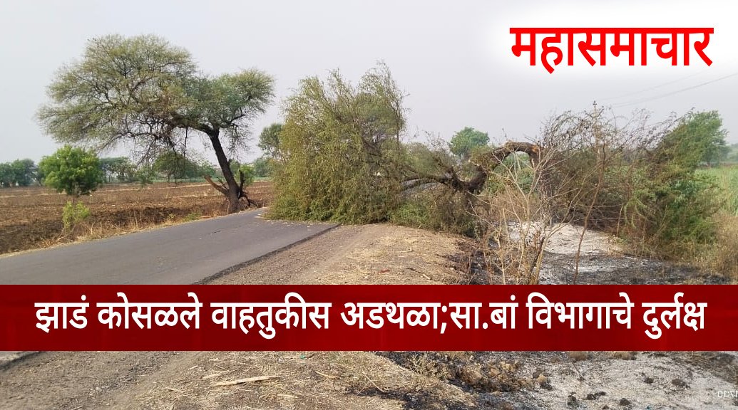 -झिरोफाटा-पूर्णा राज्य महामार्ग २४९ माटेगावांजवळ ऐन रस्त्यावर एक मोठे झाड रस्त्यावर कोसळले. असल्याची घटना ता. १६ एप्रिल रोजी सकाळी निदर्शनास आली या घटनेमुळे दोन्ही बाजूंनी वाहतूक ठप्प झाली असून,सा.बांविभागाच्या अक्षम्य दुर्लक्षामुळे सायंकाळपर्यंतही झाड हटवण्यात आलेले नसल्याने वाहनधारकांकडून संताप व्यक्त केला जात आहे.
