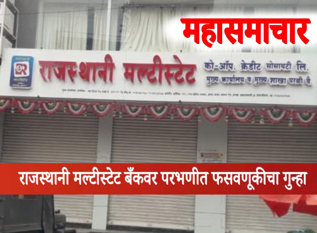 राज्यस्थानी मल्टिस्टेट बँकेवर फसवणूकीचा गुन्हा दाखल