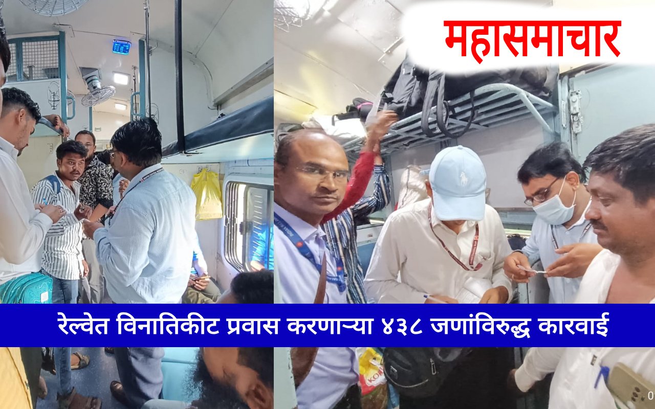 रेल्वेतून मोफत प्रवास करणाऱ्यां ४३८ जणांना पकडले