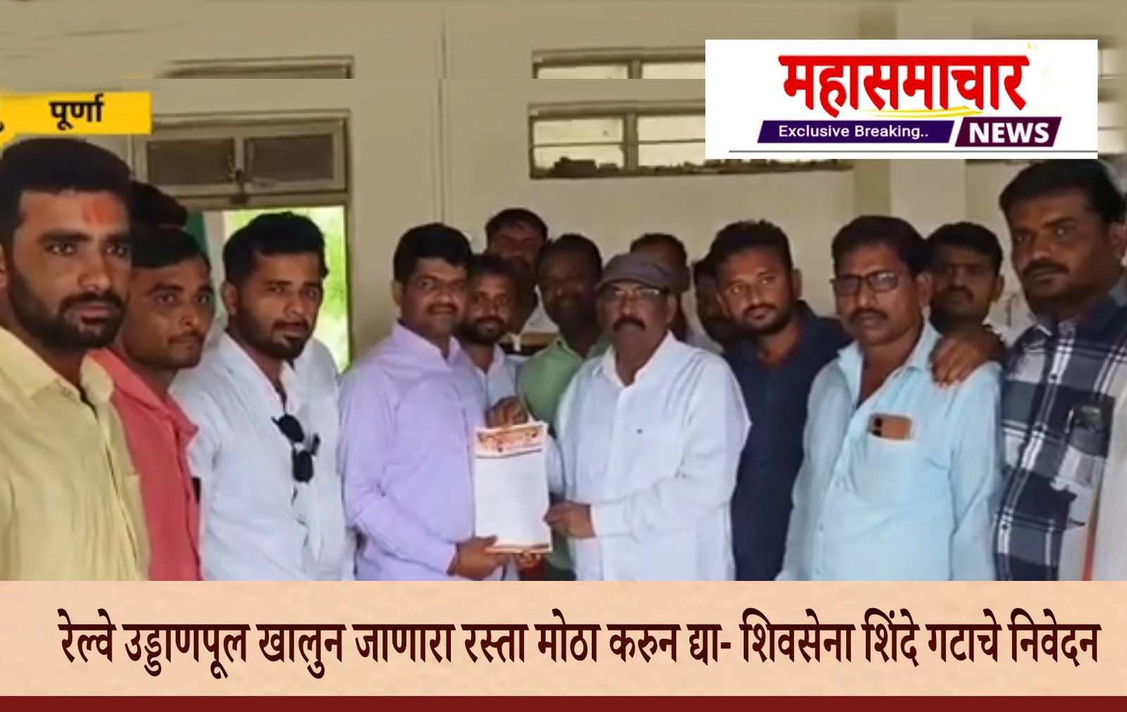 पूर्णा, ता.३ (प्रतिनिधी)शहरातुन हिंगोली व नांदेड कडे जाणाऱ्या लोहमार्गावर नव्याने उभारण्यात येत असलेल्या रेल्वे ब्रिजच्या कामामुळे परिसरातील अनेक गावांतील नागरिकांना त्रासाला सामोरे जावे लागत आहे. या मार्गावरील आडगाव (ला.), सुहागण, बरबडी, आवई, हयातनगर ही प्रमुख गावे या ब्रीज खालील रस्त्याने जोडलेली आहेत. दळणवळणासाठी ऊस उत्पादक शेतकऱ्यांसाठी हा रस्ता अत्यंत महत्त्वाचा असून सध्या ब्रिजचे काम सुरू असल्याने रस्ता विस्तुतीकरण तसेच पाणी वाहून नेणारा नाला नसल्याने वाहतुकीस अडथळे निर्माण होत आहेत.ब्रिज पूर्ण होऊन त्याचे लोकार्पण होण्यापूर्वी रस्त्याचे रुंदीकरण करण्यात यावे, अशी मागणी शिवसेना शिंदे गट व ग्रामस्थांनी केली आहे.या संदर्भात शिवसेना शिंदे गटाचे जिल्हा प्रमुख यांच्या नेतृत्वाखालील ग्रामस्थांच्या शिष्टमंडळाने तहसीलदार माधवराव बोथिकर यांची (ता.३) रोजी भेट घेऊन निवेदन सादर केले.